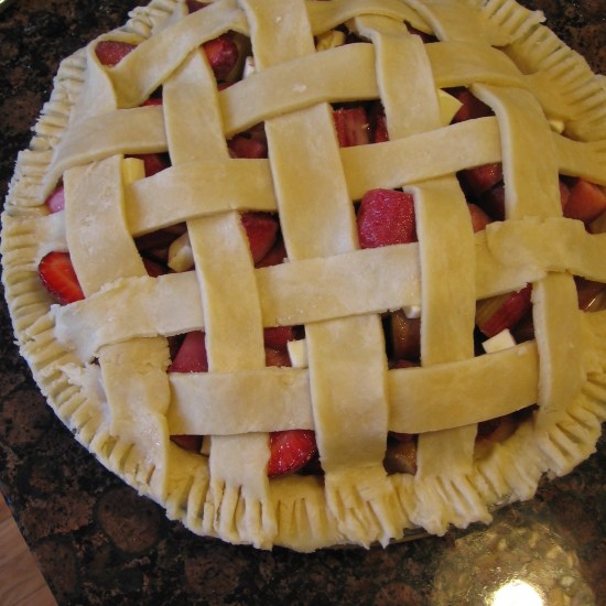 Adapted from Joy of Cooking recipes for “Rhubarb Pie” and “Basic Pie or Pastry Dough”  (citations for these recipes can be found following this recipe)