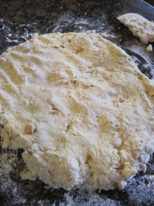 This recipe for dried apricot scones, produces a buttery, biscuit-like scone. The apricots add a tangy sweetness that cuts the salty, buttery taste of the scone and makes them delicious with a cup of hot tea. While my mother’s scones are more cake-like and usually feature raisins, I think she will approve of this recipe.