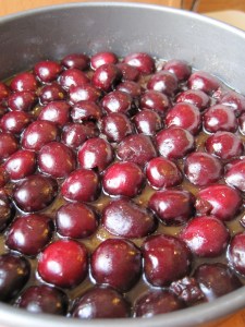 Cherry Halves situated in the Brown Sugar-Butter Mixture