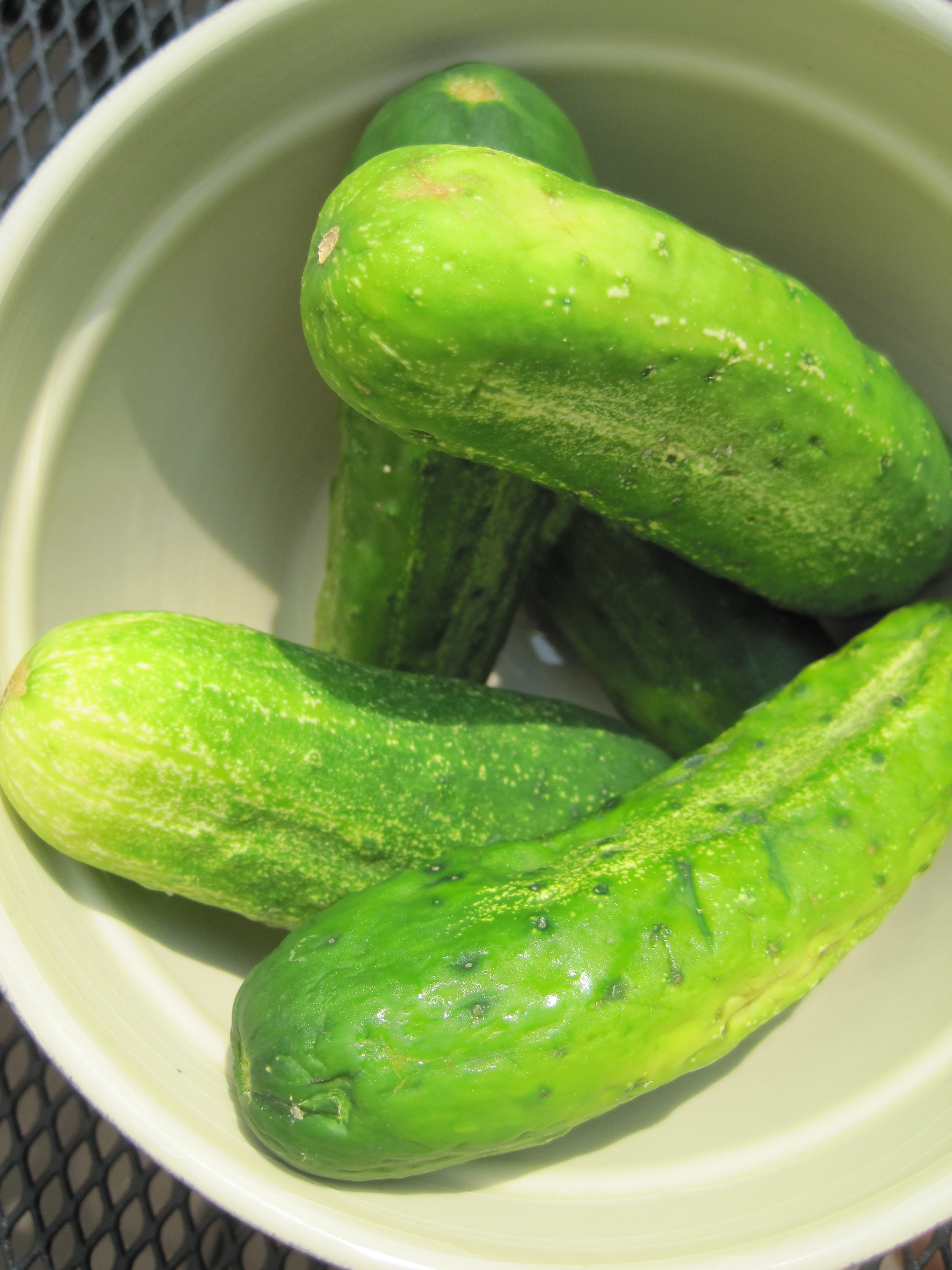 My friend, a talented cook and devoted mother, made a version of these pickles and served them with burgers for a cook-out on Saturday night. Or at least, it was her intention to serve them with burgers. Sitting out on the counter, most of us found these pickles impossible to resist and I have to say we made a dent in the batch before the burgers were even on the grill. It’s easy to see why.