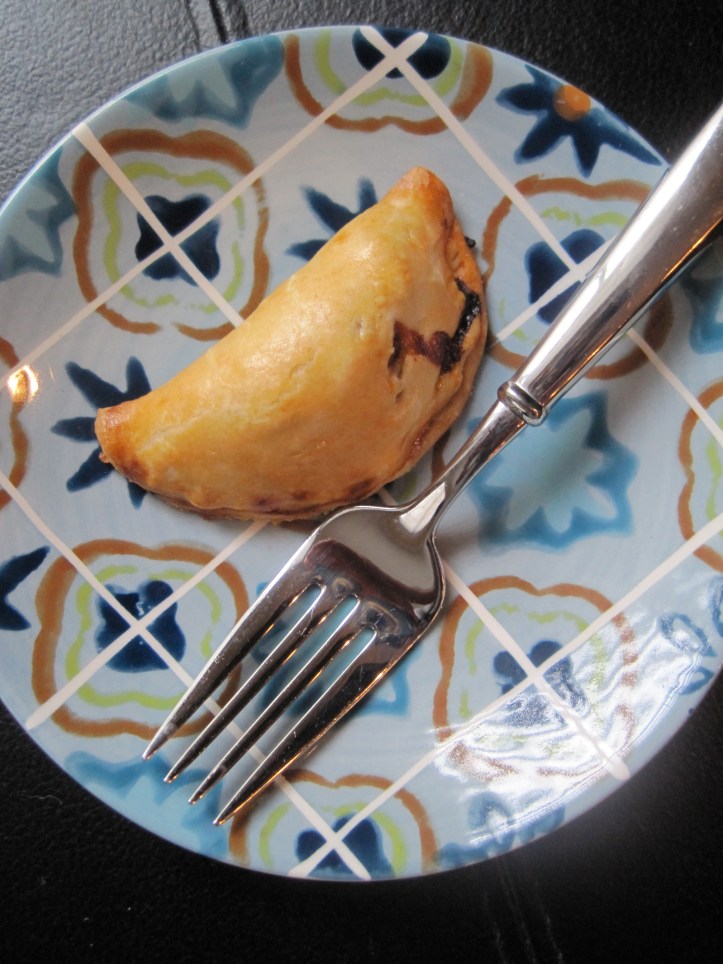 To this day, I’ve never been able to recreate those empanadas that I enjoyed around the table with my Quito host family. However, I’ve come up with a recipe that more than satisfies when I get a craving for pastry dough with a meaty, flavorful filling. Chopped raisins and green olives, while seemingly odd additions, provide a delicious sweet and salty contrast to the beef filling seasoned with cumin, onions, and mustard. While you can use this recipe to make several large empanadas to eat as a main course, I prefer to make small empanadas and serve them as hors d’oeuvres.