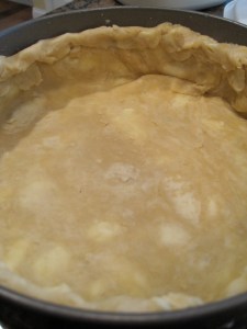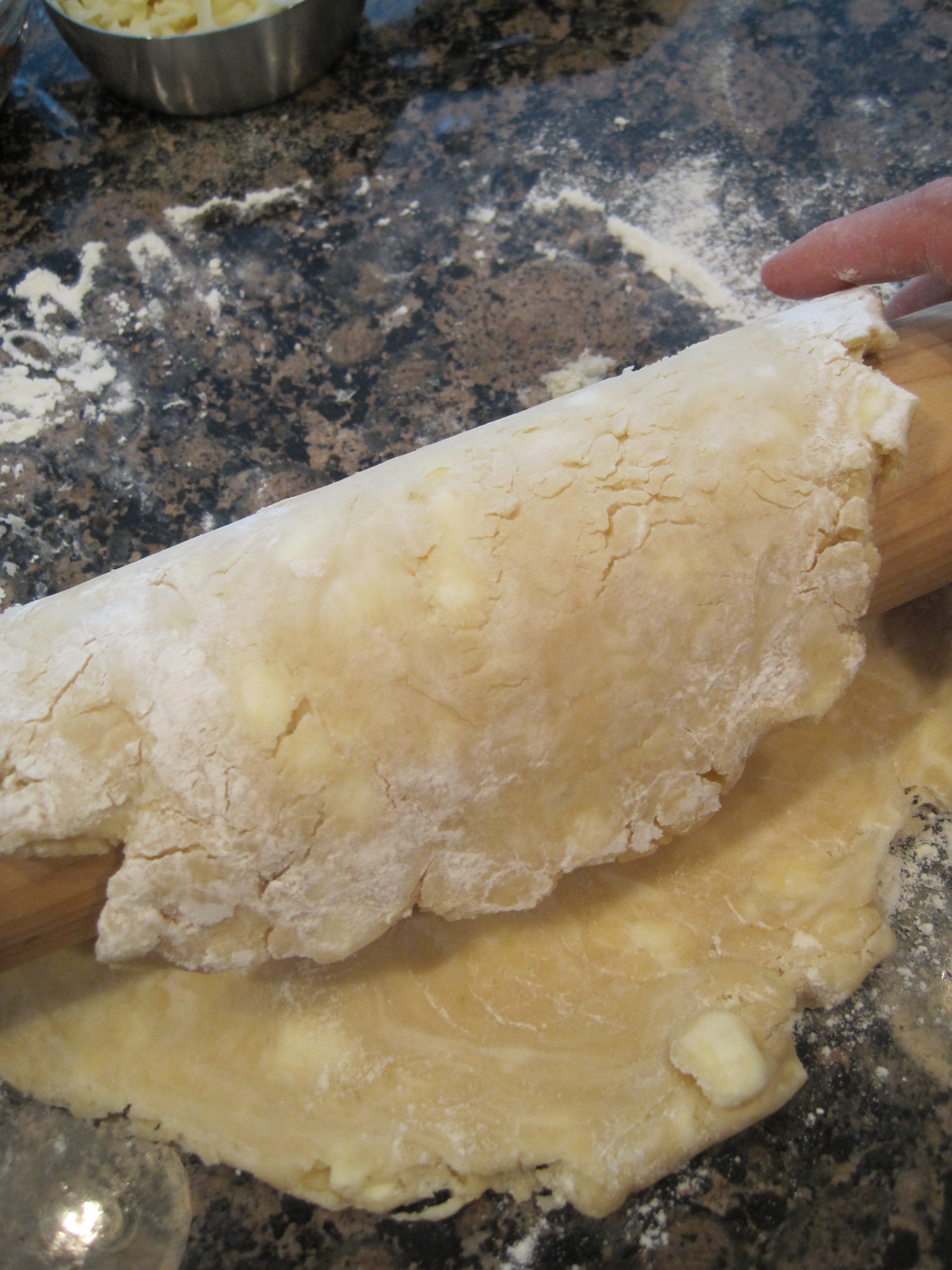 First you’ll want to make sure your fat (butter, lard, or shortening) is very cold. Work quickly when making the dough. You don’t need to knead it. Rather, pull it together as quickly as possible and get it in the refrigerator to chill. While a food processor can do this part quickly, I find that when you calculate in the time it takes to wash the food processor it really doesn’t save that much time from doing it by hand. I prefer to make it by hand as it ensures that the dough doesn’t get overworked and stays tender.