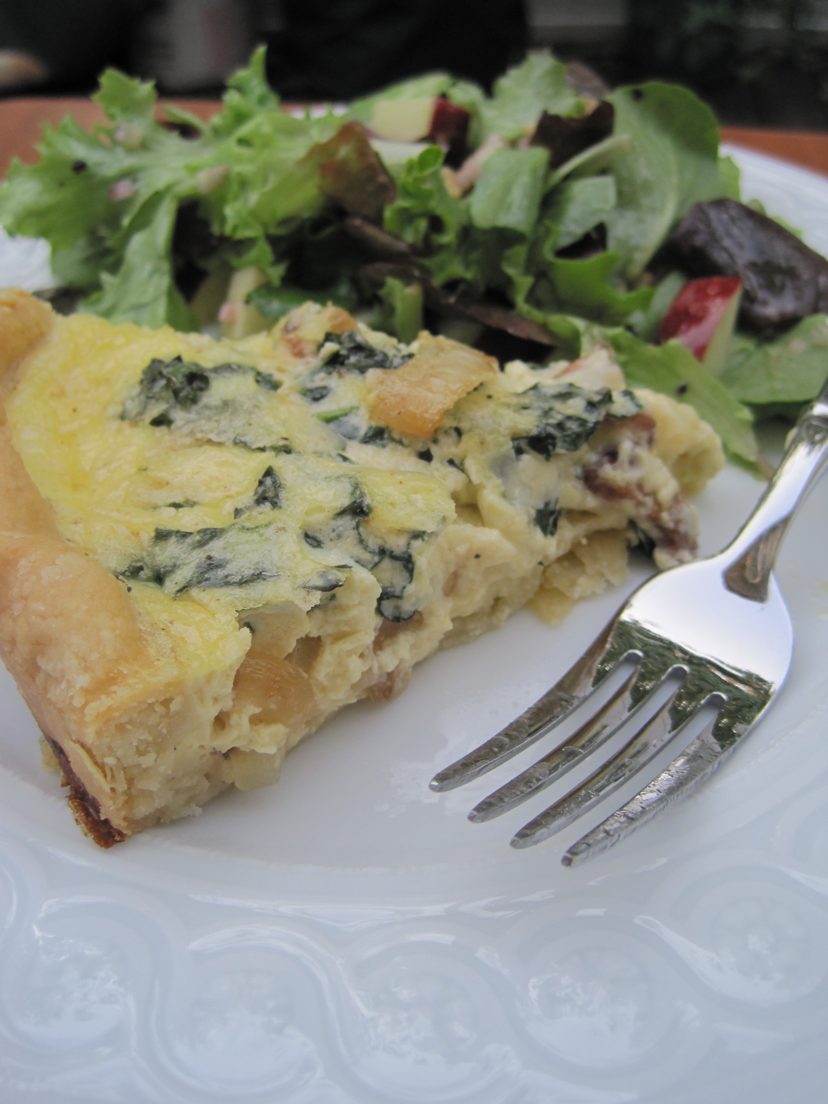 And with that I leave you to bake your quiche. If you do decide to follow the recipe and make this bacon, kale, and onion quiche, I urge you to serve it with a mixed green salad of apples, toasted walnuts, and dried cranberries. It’s a perfect pairing and I’ve included a recipe at the end of this post. Happy cooking!