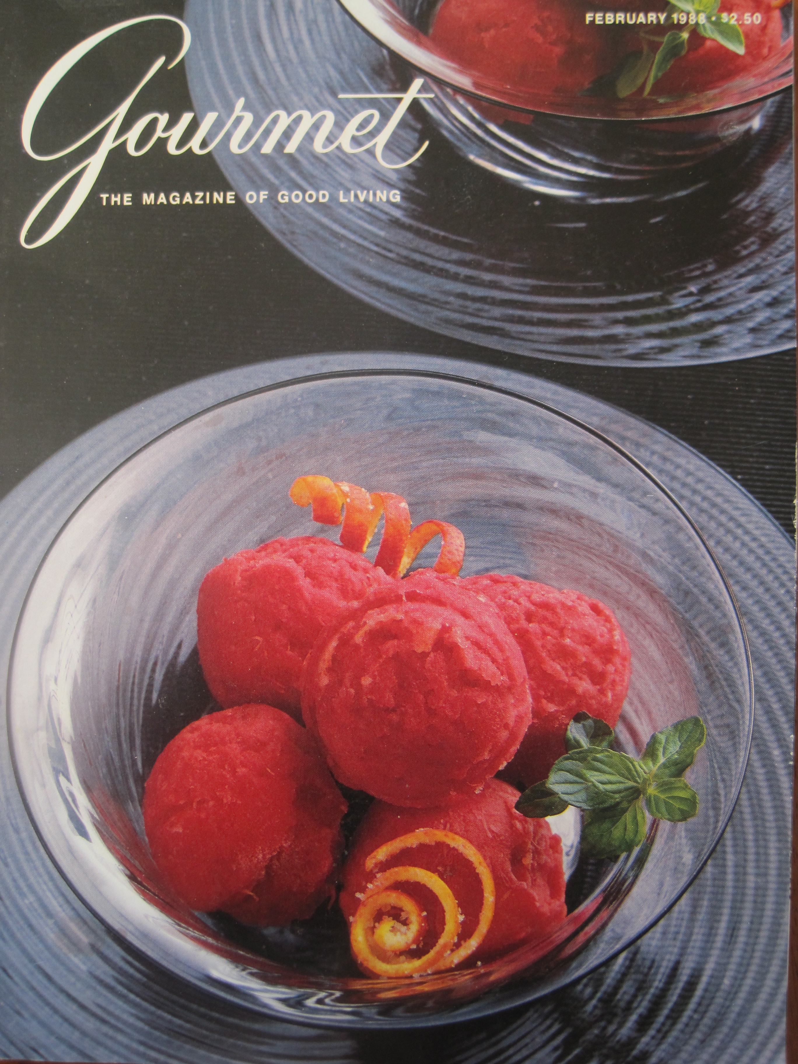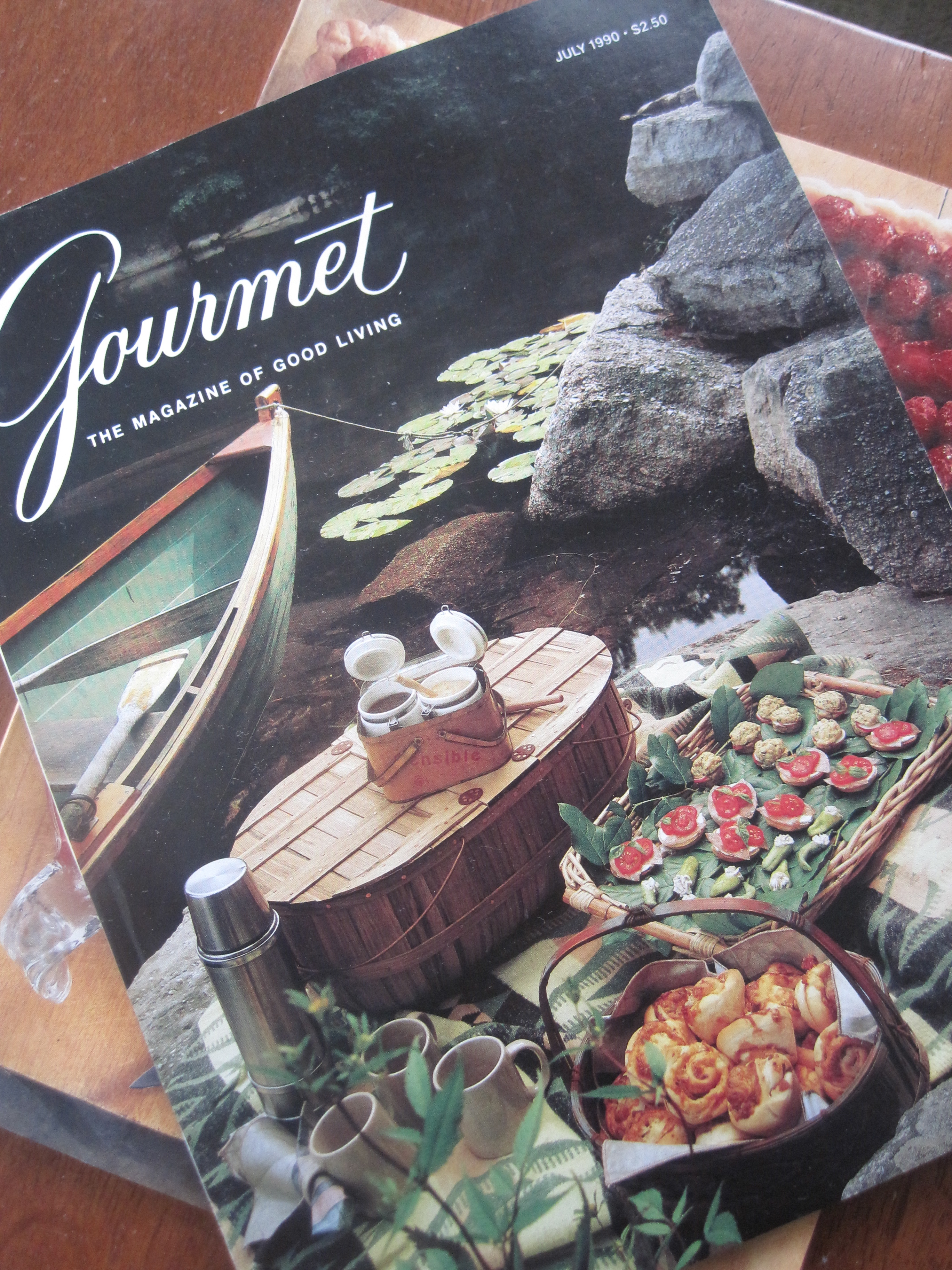 This week I received an irresistible offer from my college advisor. He and his wife are down-sizing and he wanted to know if I might want his old Gourmet magazines. Despite my overflowing bookshelves, my stacks of magazines waiting to be read, and my binders of recipes waiting to be tested, I answered with an enthusiastic “YES.”