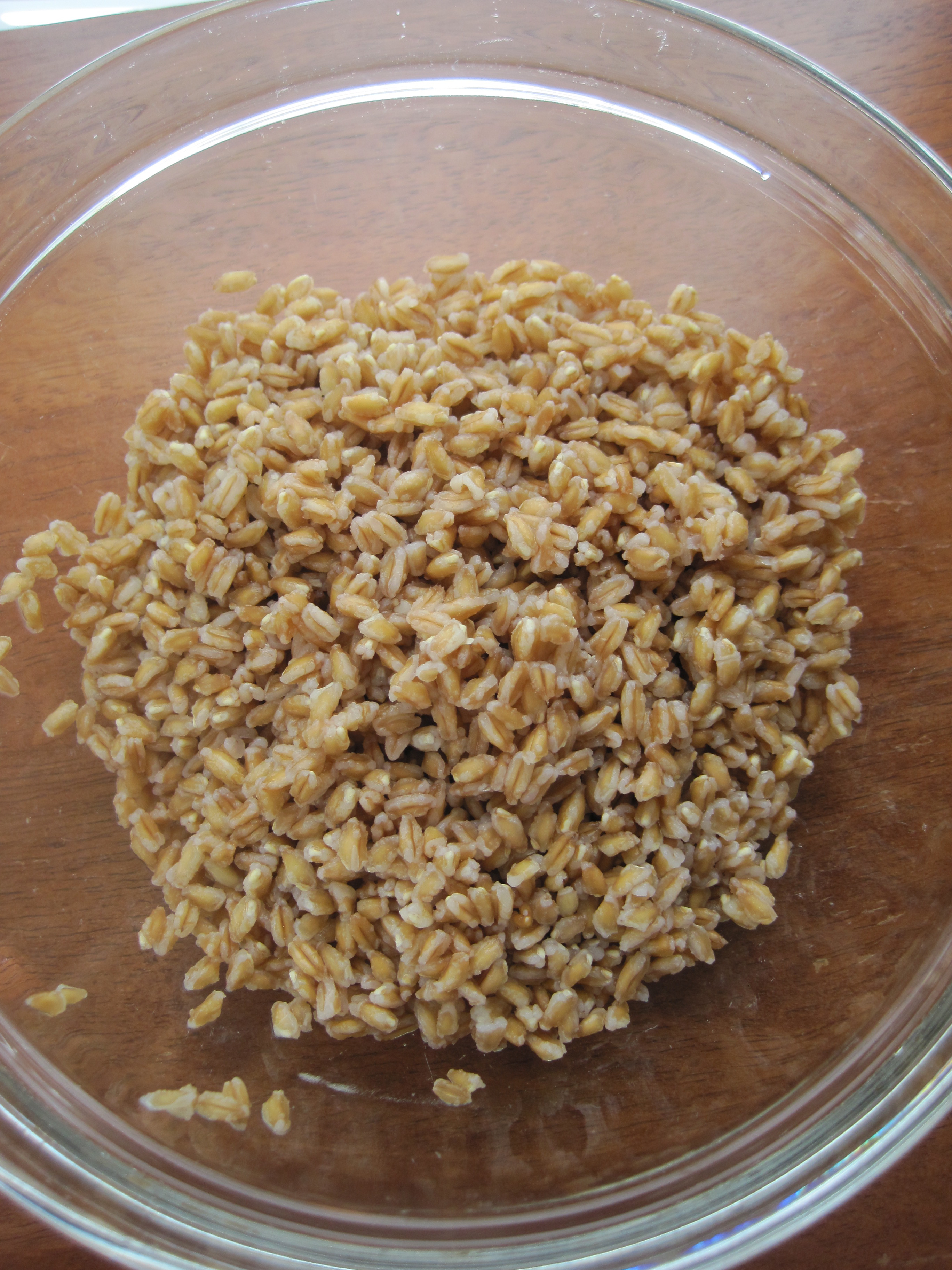 I adapted this recipe from the recipe for “Bell Pepper and Farro Salad” in The Silver Spoon cookbook.