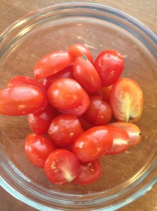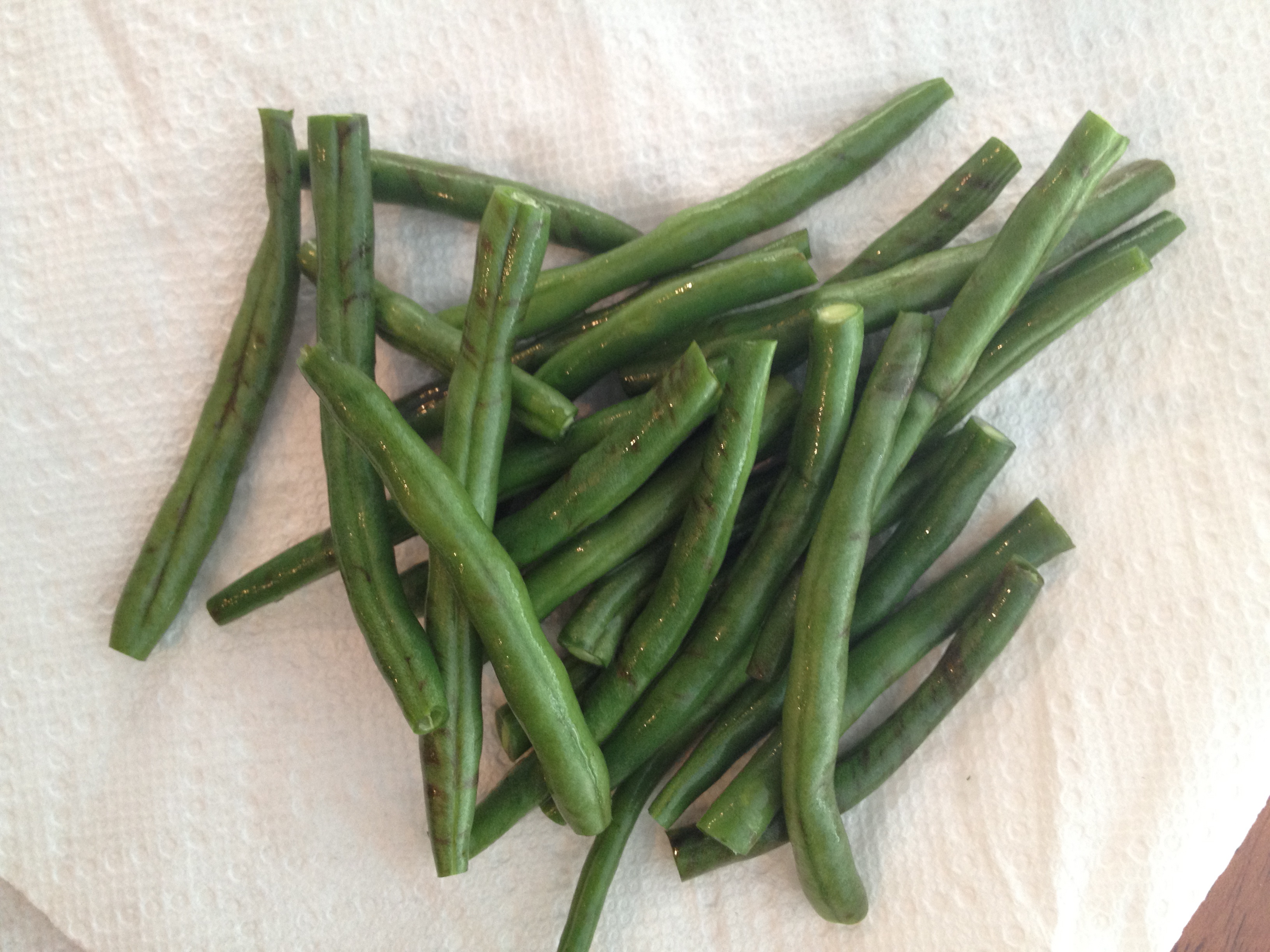 Use another ½ tablespoon of vinaigrette to dress the grape tomatoes. Set aside. Use ½ tablespoon of vinaigrette to dress the haricot verts and then set them aside as well.