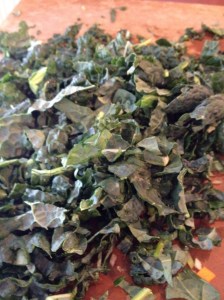 2 packed cups (about 6 ounces) thinly sliced (chiffonade) kale, stems removed