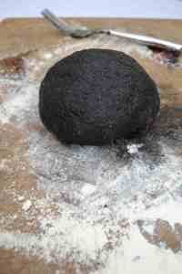 While it could certainly be part of your costume, you might want to wear gloves when making this pasta to avoid staining your hands and fingernails black.