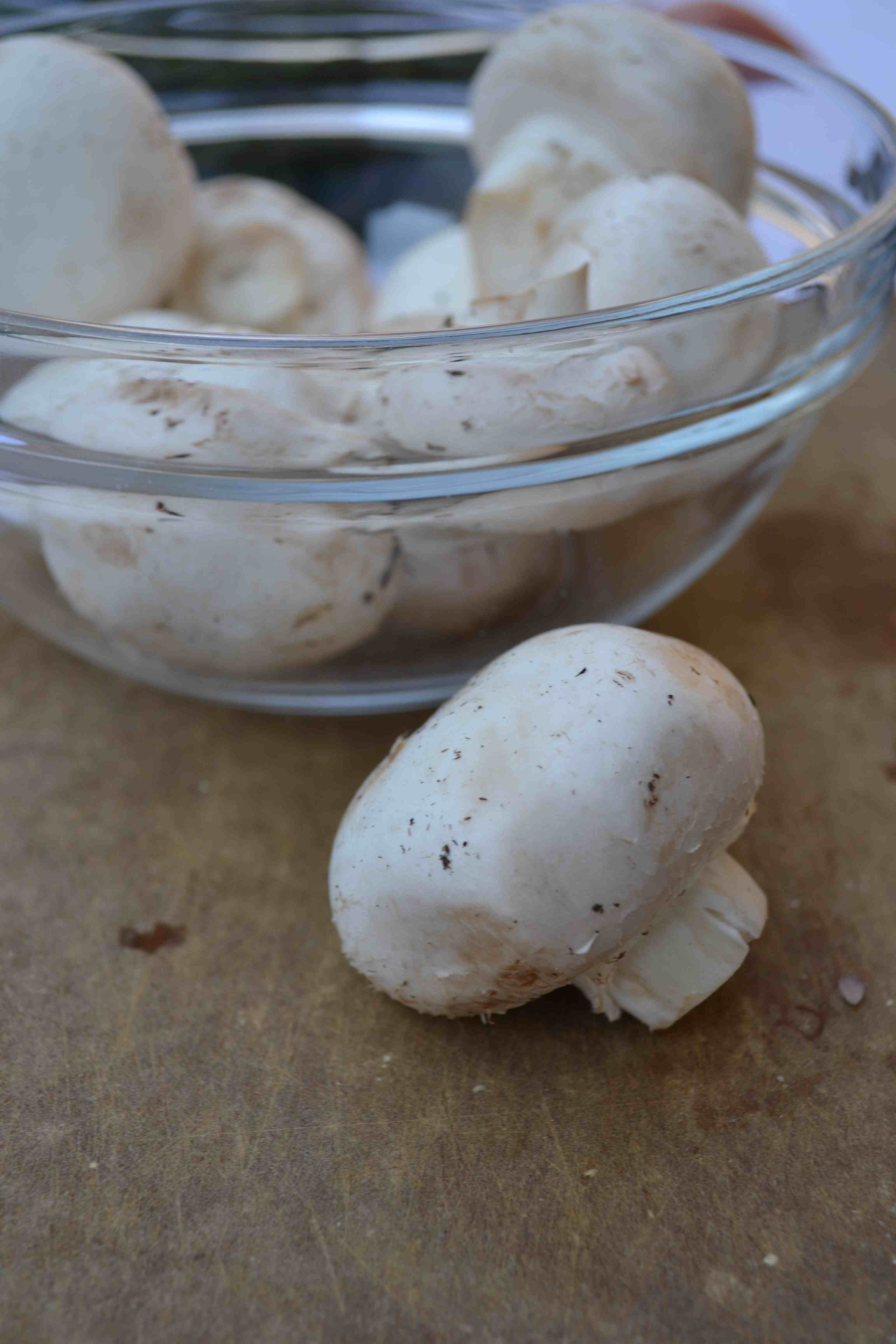 Place the mushroom caps on the baking sheet. Trim the ends from the stems and finely chop enough of the mushroom stems to equal a ¼ cup. Set aside. The remaining mushroom stems can be discarded or used for another purpose