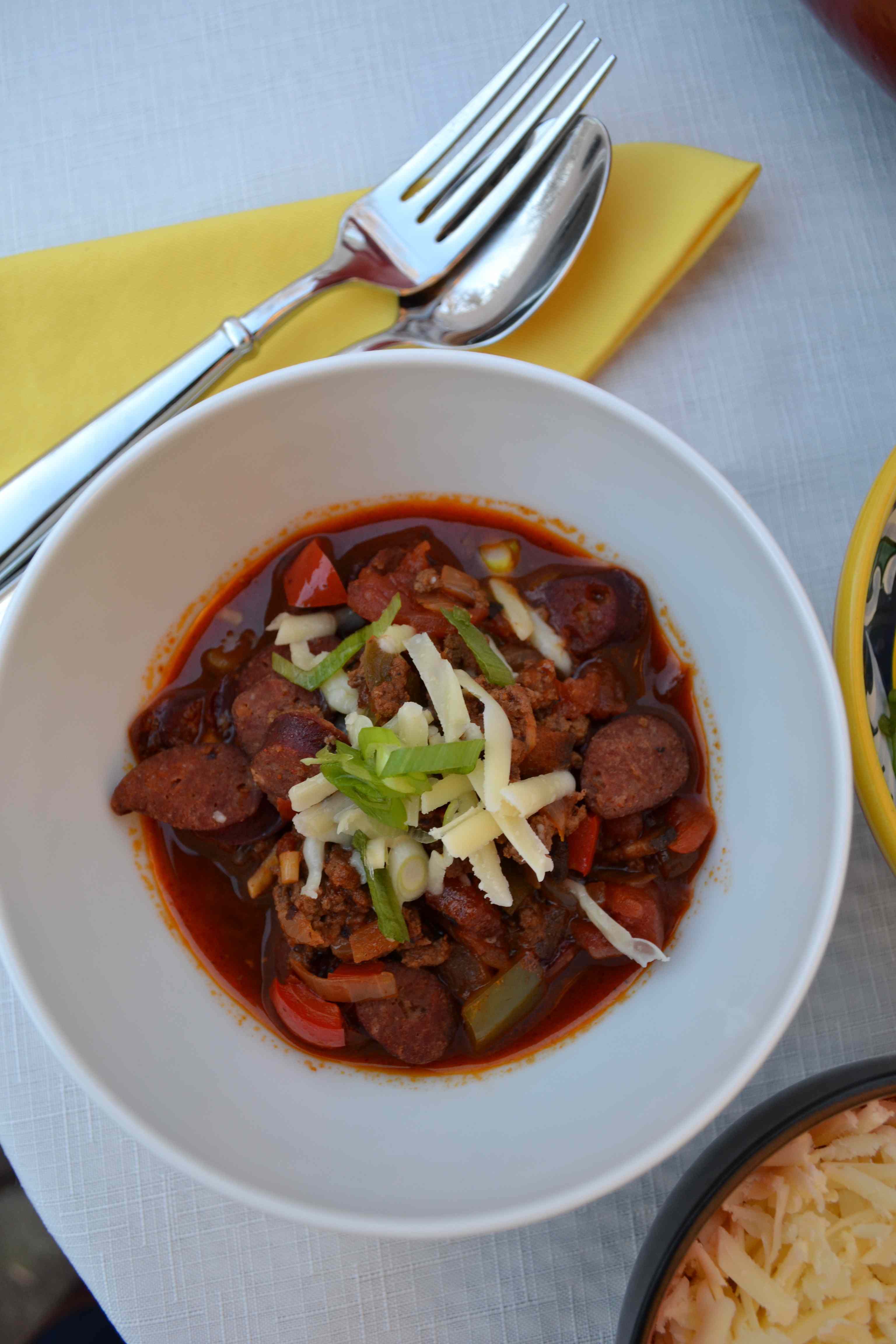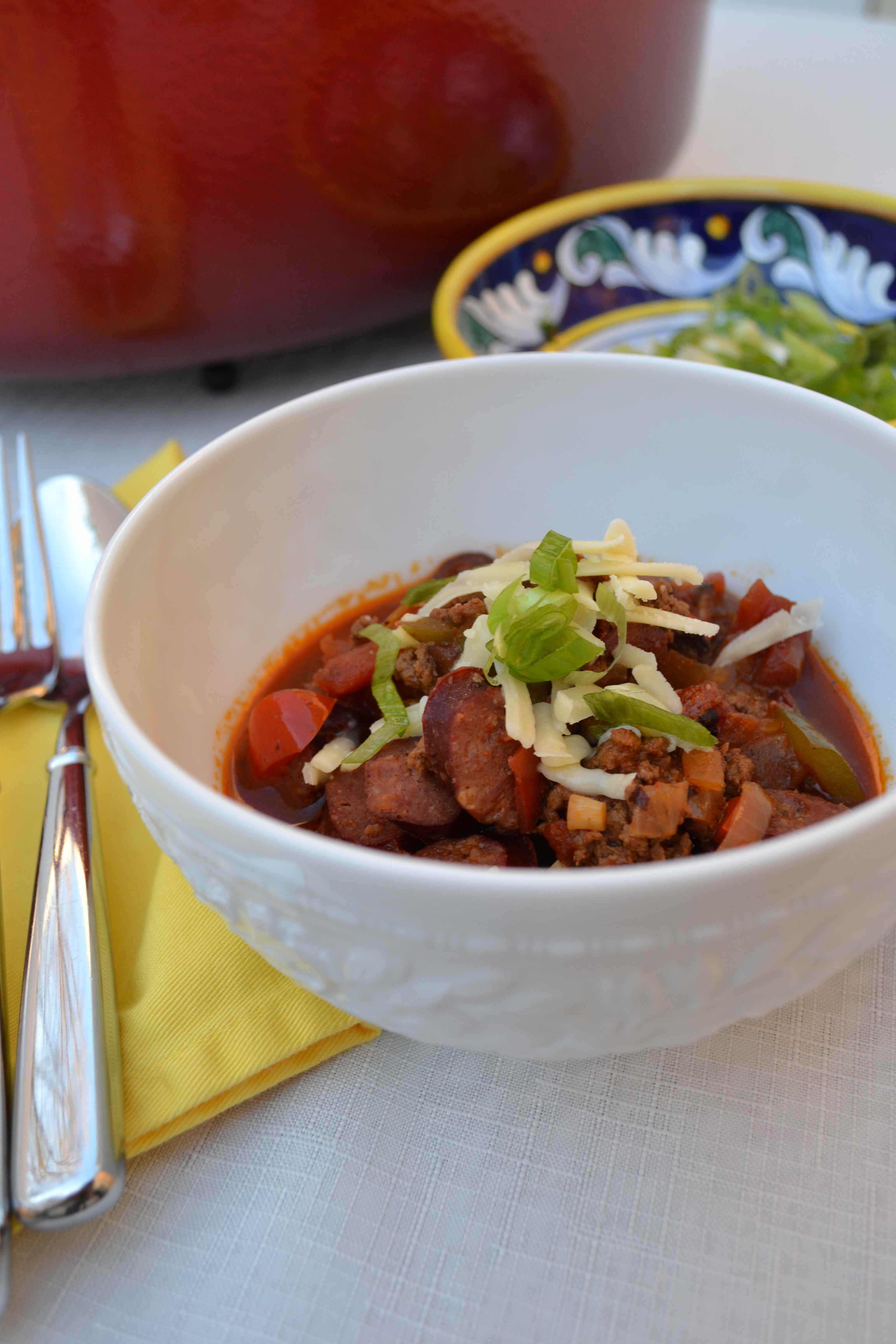 Serve with: sliced green onions, grated cheddar cheese, sour cream