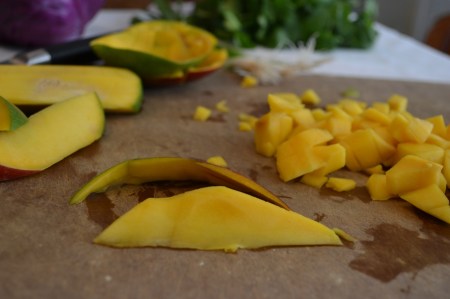 Use a paring knife to cut off the peel from the remaining wedges