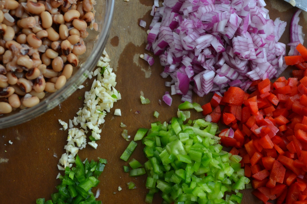 While my cupboard has always contained both dried and canned beans, until recently I only kept black-eyed peas in dried form. I grew up eating black-eyed peas once a year on New Year’s day. Paired with braised collard beans, I doused the black-eyed peas (served in the dish known as hoppin john) with hot pepper vinegar and superstitiously ate everything in order to bring wealth in the new year. The collards symbolized greenbacks while the black-eyed peas were eaten to fill your pockets with coins. Dried black-eyed peas and collards cooked for hours before serving and while leftovers might fill the fridge for a day or two more, black-eyed peas wouldn’t grace my table again for another year. And then I learned about Southern (or Mississippi) caviar and added canned black-eyed peas to my shelves.