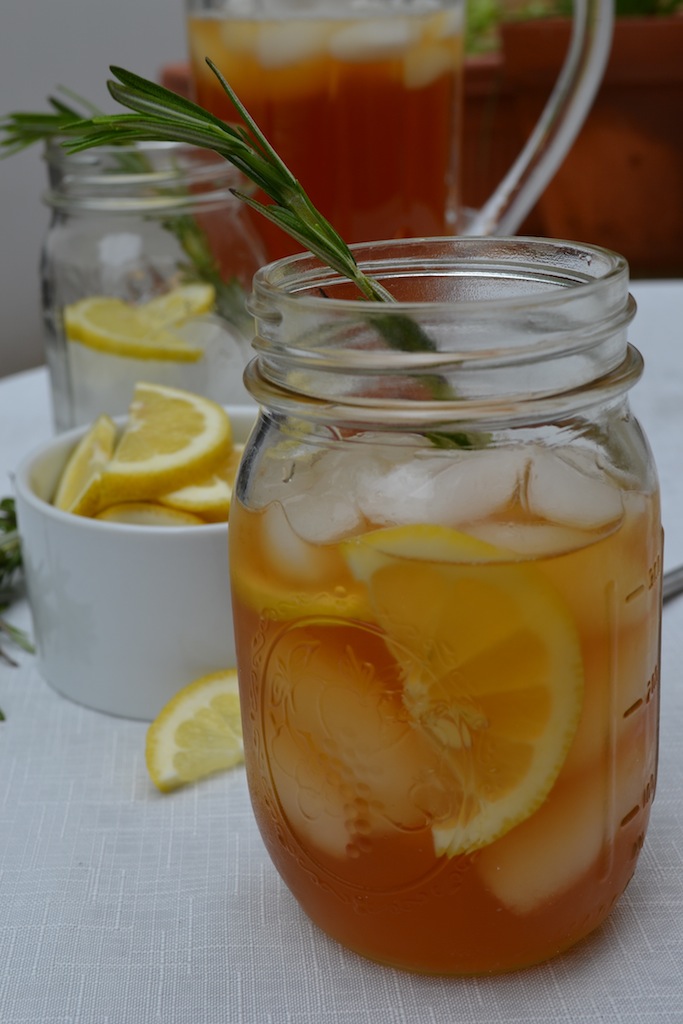 Ginger, Lemon and Rosemary Sweet Tea with Lemon Wedges