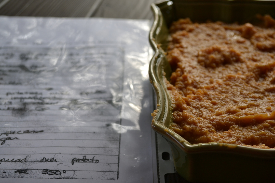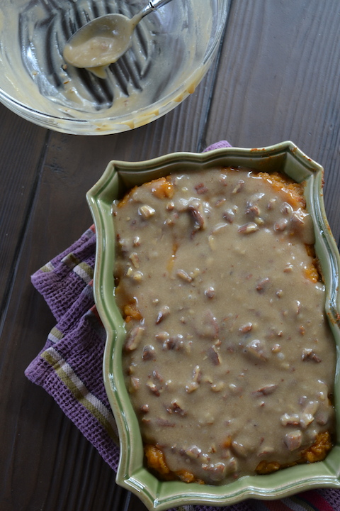The recipe actually comes from my Aunt Lisa, but for as long as I can remember my mother has made it for Thanksgiving and then again on Christmas day. Sweet and buttery with a sugary-pecan topping, it’s practically dessert and every bite brings back the most delicious memories of holidays from years past.
