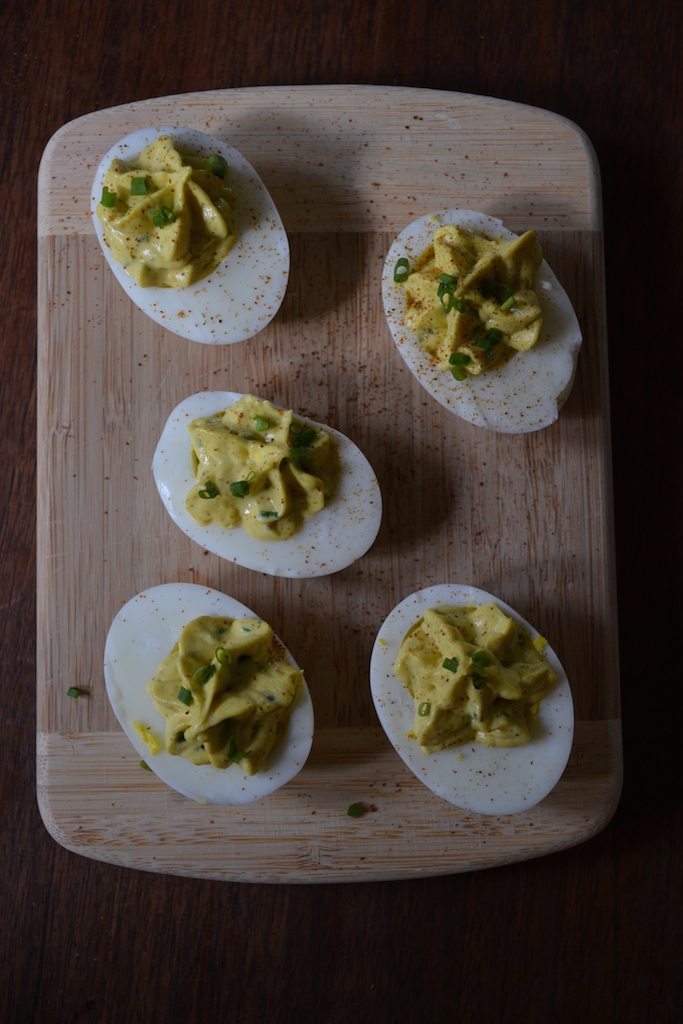 Deviled eggs, whether topped with caviar, or in a nod to the past, simply sprinkled with a bit of paprika, are one of those dishes that always make folks happy when they appear on a table. I particularly crave them this time of year when warmer days make me want to head to the nearest park with a blanket and a basket full of nibbles.