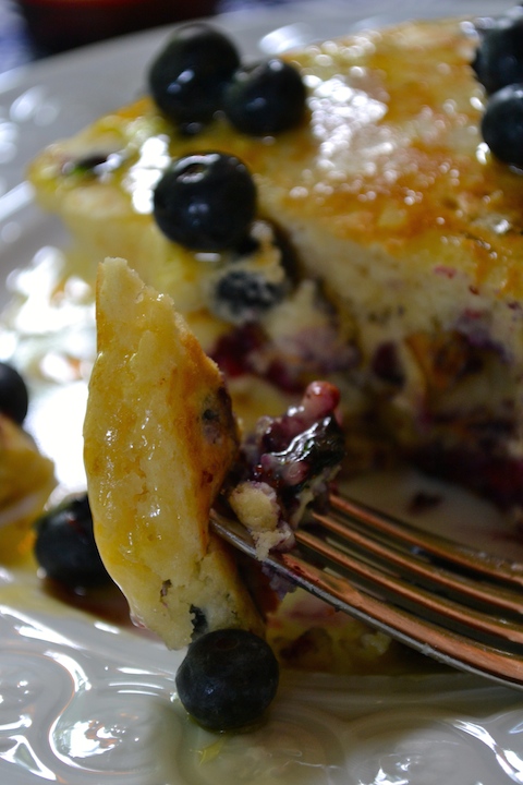 But I digress. Along with the recipe for rumaki, which I’m thinking I’m going to have to try, there was also a recipe for beer pancakes. Yes, beer. In pancakes. I had to make them and with the addition of 1 cup of fresh blueberries, I got these pancakes. And they are good. Like good enough to have 100 of them. Happy cooking!