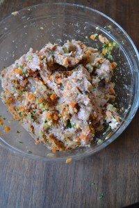 Meatloaves require lots of mixing and I find that a big bowl and latex gloves make this chore go quickly. Stirring with a spoon may lead to bigger biceps, but hands are your best tool and clad with latex gloves you can mix up the ingredients in this recipe in no time flat. When shaping the meatloaves, latex gloves come in handy as well; if using your bare hands, be sure to lightly dampen them with water to prevent the meat from sticking to them.