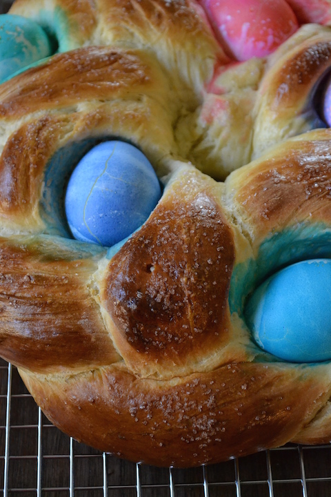 I’ve never made Easter bread before, but the braided loaf with brightly-colored eggs tucked inside seemed like a dish that would delight both the young and the young at heart. Traditionally made in Greece and Italy around Easter, a quick search on the internet reveals that the bread’s popularity is not limited to the Mediterranean.