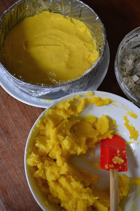 Layer of Yukon Gold Potato with Lime and Aji Amarillo