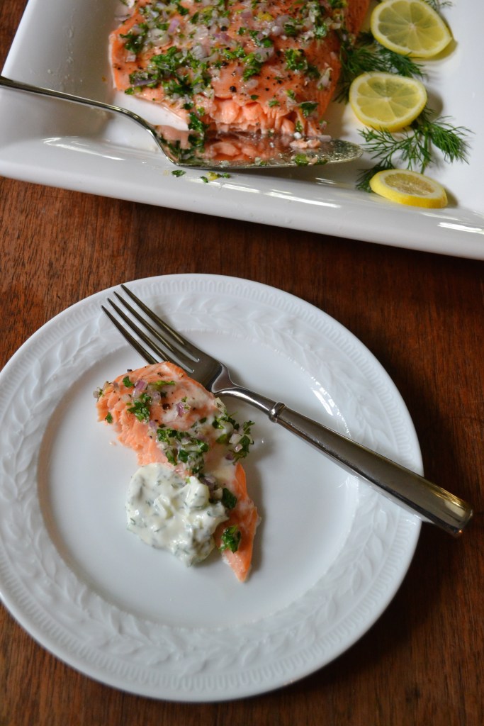 Slow-Roasted Salmon with Cucumber-Dill Sauce