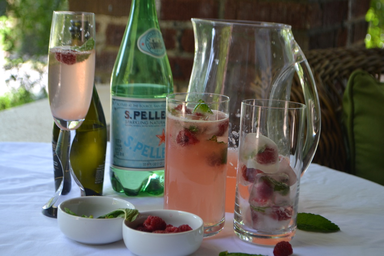 For boozy sparkling pink lemonade, add 4 cups of cold water instead of 8 cups to the lemon-sugar mixture. To serve a group, add a bottle of sparkling to the pitcher and serve immediately. For individual servings, fill a champagne flute half full with sparkling wine and top with pink lemonade. Garnish with fresh raspberries and a mint sprig.