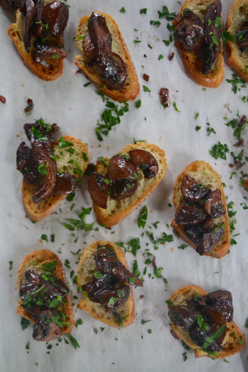 Crostini topped with Sautéed Wild Mushrooms – Printer Friendly Recipe