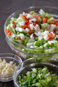 Cajun Trinity (Peppers, Onions and Celery), Garlic and Green Onions