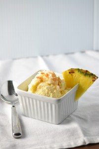 Pina Colada Ice Cream with Toasted Coconut and a Pineapple Wedge (www.mincedblog.com)