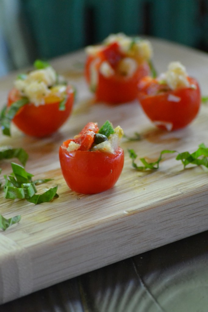 Cherry Tomatoes stuffed with Panzanella (www.mincedblog.com)