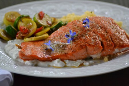 Seared Salmon with Borage Yogurt Sauce