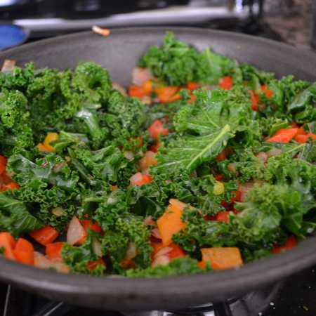 Kale, Roasted Bell Pepper, Onion and Gruyere Frittata