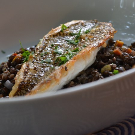 Pan-Seared Black Bass over Black Lentils