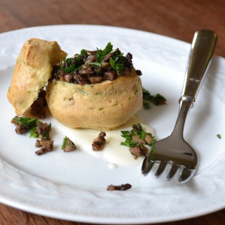 Parmesan Gougeres stuffed with Mushroom Duxelle