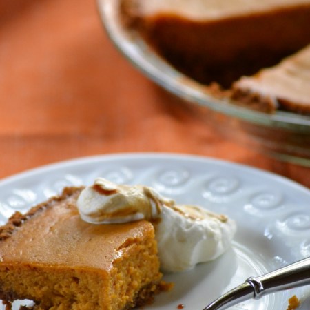 Pumpkin Pie with a Gingersnap Crust and Molasses Whipped Cream