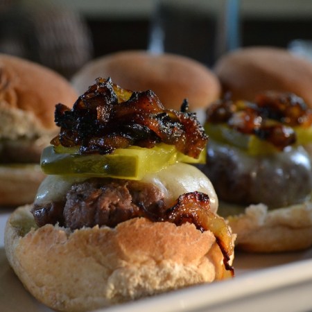 Ground Beef Sliders with Spicy Mustard and Caramelized Onions