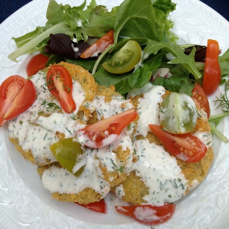 Fried Green Tomatoes with Buttermilk-Dill Dressing